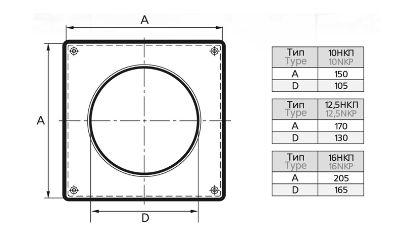 Накладка торцевая 205х205, для круглого воздуховода D160