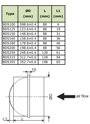 Обратный клапан предназначен для предотвращения перетекания воздуха при отключенных вентиляторах. Представляет собой подпружиненный круглый клапан типа "бабочка"