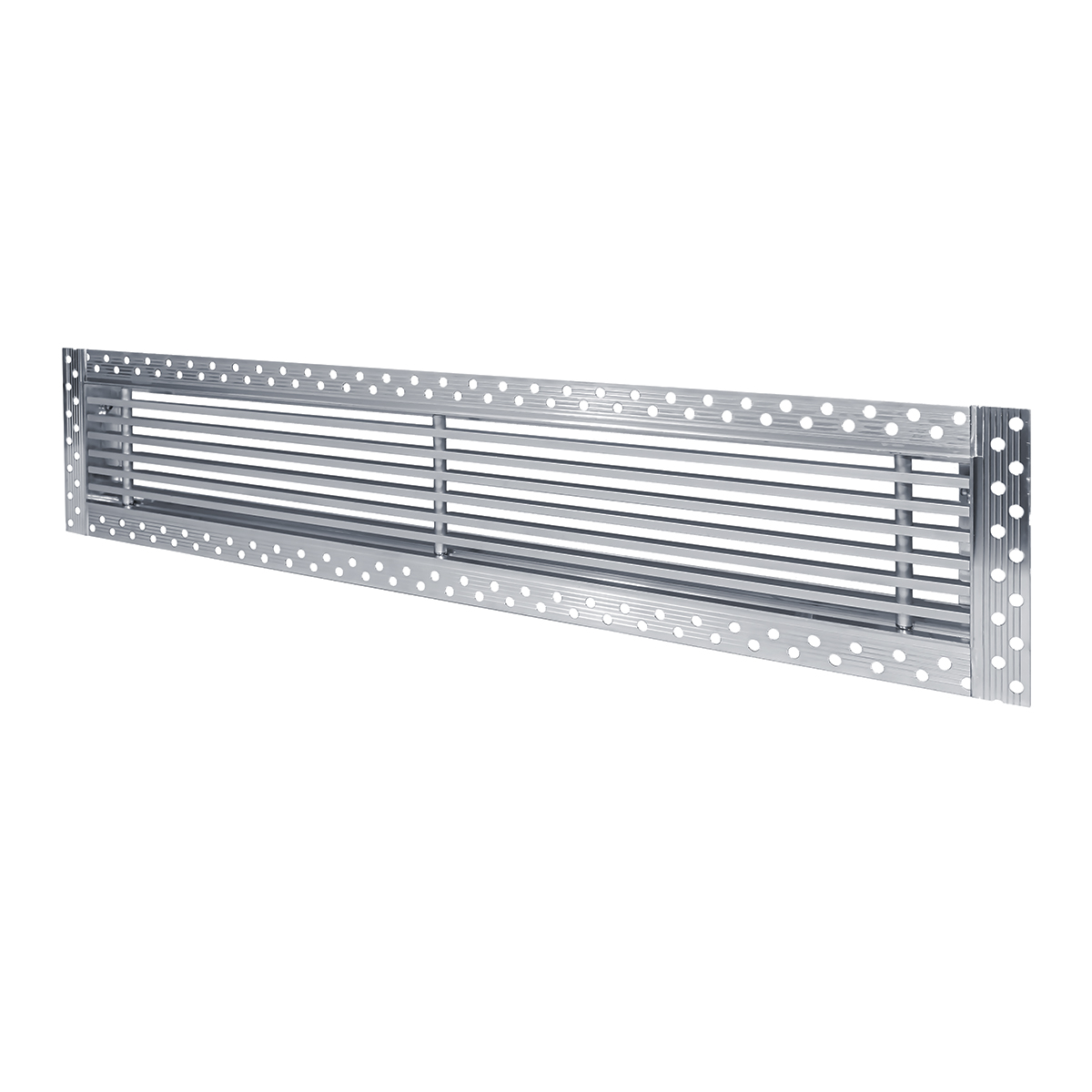 Данная решетка подходит для монтажа на любую поверхность под финишную отделку. Рамка и экран изготовлены из алюминия, опора экрана - из оцинкованной стали. Рама оснащена «полкой» 1,9 мм и рифлеными краями для большей адгезии финишного материала – шпатлевки, цемента. Решетка имеет съемную центральную часть с фиксированным углом наклона ламелей 0°. Она крепится к корпусу прочными металлическими тросиками, легко снимается для очистки и удобного обслуживания.