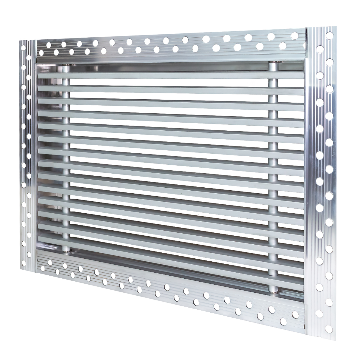 Данная решетка подходит для монтажа на любую поверхность под финишную отделку. Рамка и экран изготовлены из алюминия, опора экрана - из оцинкованной стали. Рама оснащена «полкой» 1,9 мм и рифлеными краями для большей адгезии финишного материала – шпатлевки, цемента. Решетка имеет съемную центральную часть с фиксированным углом наклона ламелей 15°. Она крепится к корпусу прочными металлическими тросиками, легко снимается для очистки и удобного обслуживания.