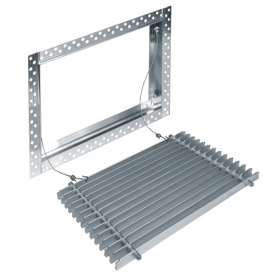 Данная решетка подходит для монтажа на любую поверхность под финишную отделку. Рама оснащена «полкой» 1,9 мм и рифлеными краями для большей адгезии финишного материала – шпатлевки, цемента. Решетка имеет съемную центральную часть с декоративным экраном. Она крепится к корпусу прочными металлическими тросиками, легко снимается для очистки и удобного обслуживания.