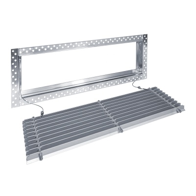 Данная решетка подходит для монтажа на любую поверхность под финишную отделку. Рама оснащена «полкой» 1,9 мм и рифлеными краями для большей адгезии финишного материала – шпатлевки, цемента. Решетка имеет съемную центральную часть с декоративным экраном. Она крепится к корпусу прочными металлическими тросиками, легко снимается для очистки и удобного обслуживания.