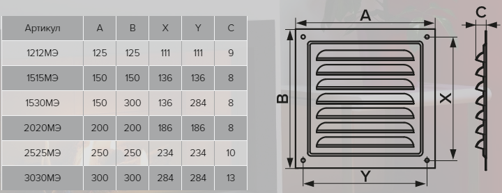 *Для декоративного оформления выходов приточных или вытяжных вентиляционных систем бытовых, общественных и промышленных зданий.