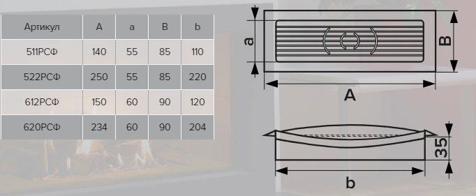 Решетка вентиляционная 234х90 с фланцем 204х60