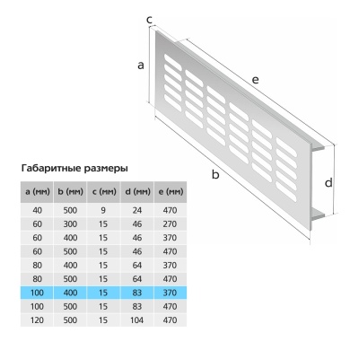 Вентиляционная решетка Europlast RA1040S серебро (400х100 мм)